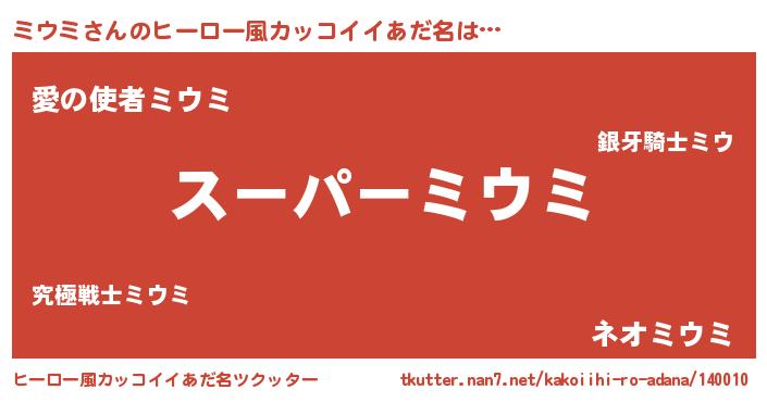 | ポケモン風あだ名 | 『ミウゴンZ』『ミウチュウ』 |