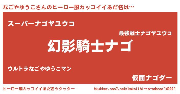 | 男性向けラノベタイトル風あだ名 | 『なごやゆうこの嫁は女の子じゃないと思った?』 |