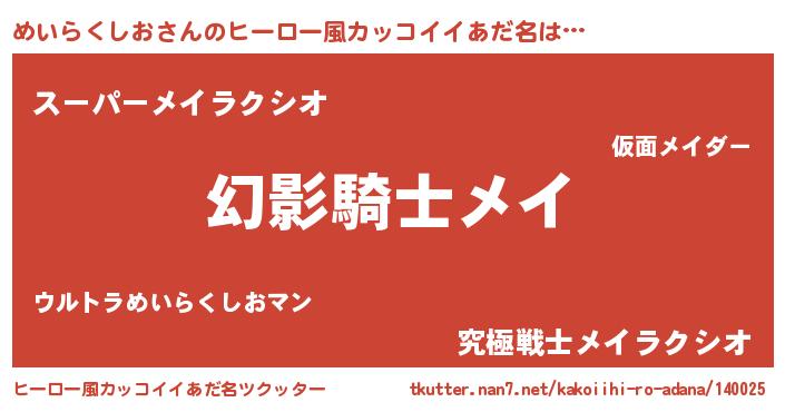 | 意味不明あだ名 | 『とにかく怪しいめいらくしお』 |