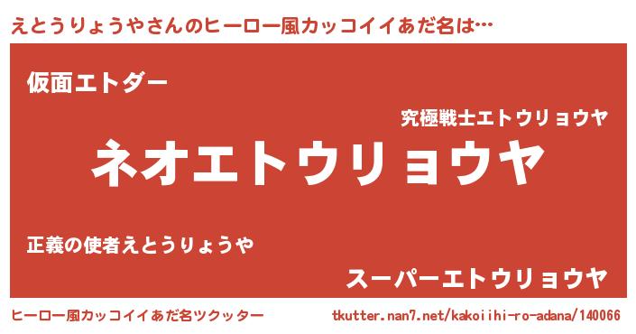 | 意味不明あだ名 | 『永久保存えとうりょうや』 |