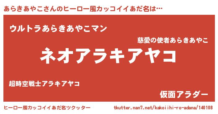| 男性向けラノベタイトル風あだ名 | 『あらきあやこという概念が存在しない退屈な世界 』 |