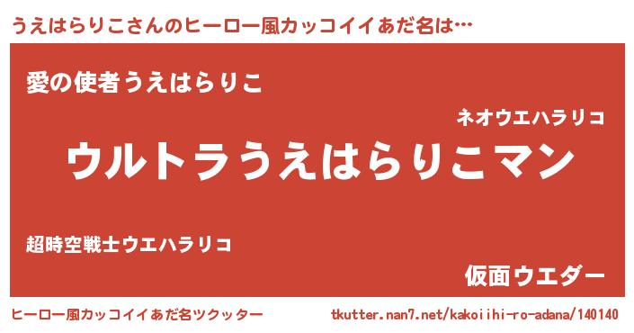 | 欧米人風あだ名 | 『うえはらりこクリステル』 |