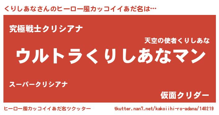 | 意味不明あだ名 | 『くりしあなフォーエバー』 |