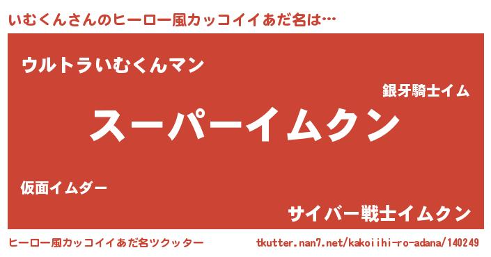 | 男性向けラノベタイトル風あだ名 | 『いむくんの憂鬱』 |