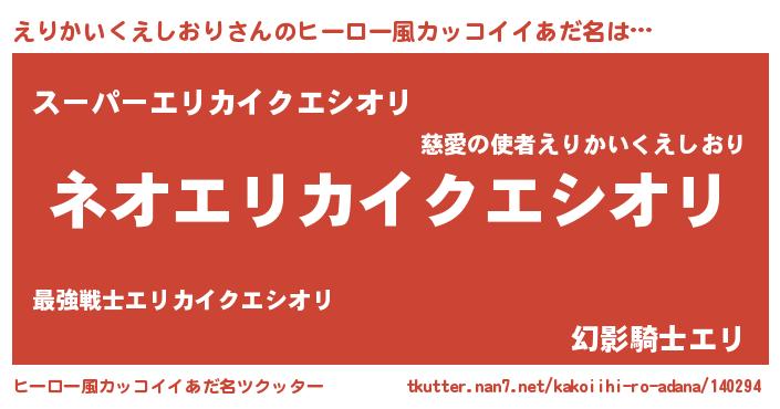 | 女子向けラノベタイトル風あだ名 | 『えりかいくえしおりの契約王妃』 |