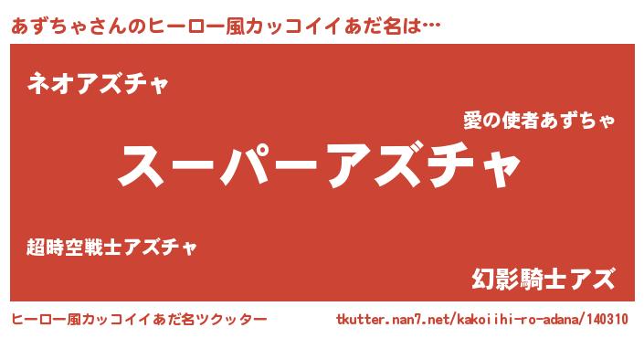 あずちゃさんのヒーロー風カッコイイあだ名をツクッター!
