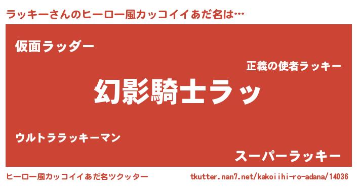 | 男性向けラノベタイトル風あだ名 | 『ラッキー~年齢イコール彼女いない歴の魔法使い~』 |
