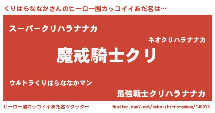 | 胡散臭い通販商品みたいなあだ名 | 『信頼と実績のサプリメント…その名も「くりはらななか」』 |