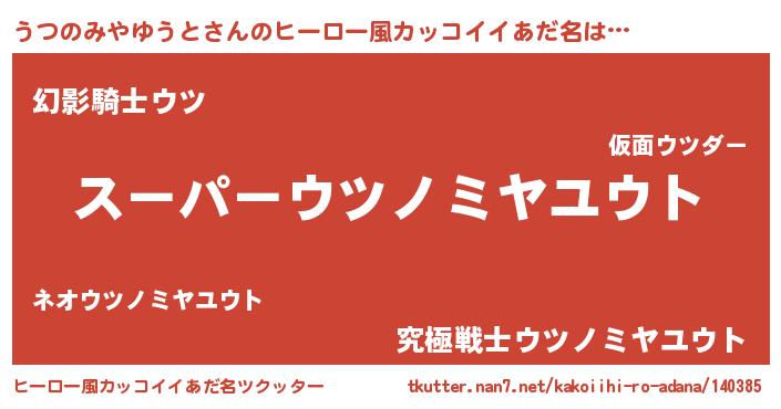 | 男性向けラノベタイトル風あだ名 | 『ウツノミヤユウトアートオンライン』 |