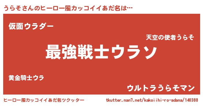 | 男性向けラノベタイトル風あだ名 | 『Re:うらそから始める異世界生活』 |