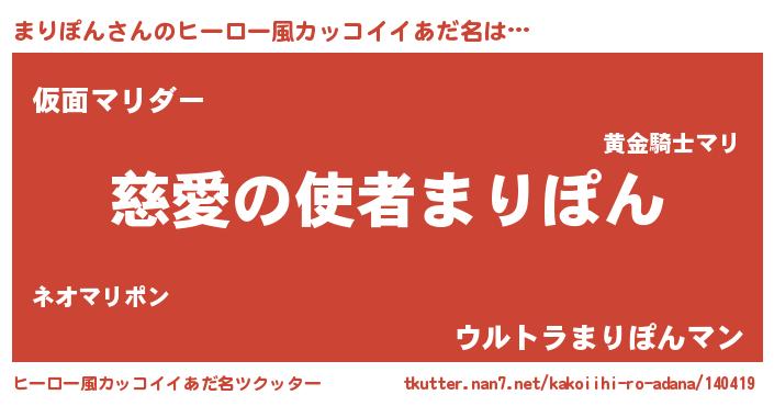 | 欧米人風あだ名 | 『ダニエルまりぽん』『ウサインまりぽん』 |