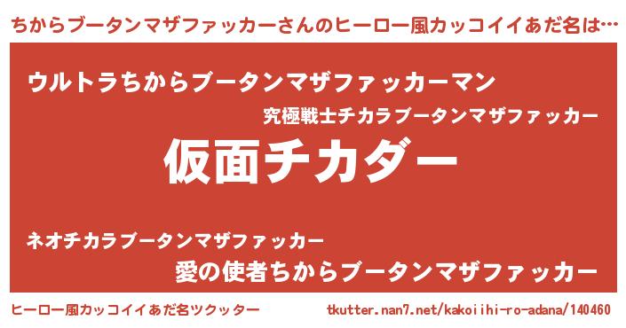 | 男性向けラノベタイトル風あだ名 | 『魔弾の王とちからブータンマザファッカー』 |