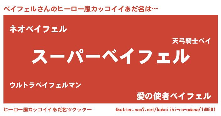 | 男性向けラノベタイトル風あだ名 | 『ベイフェルアートオンライン』 |