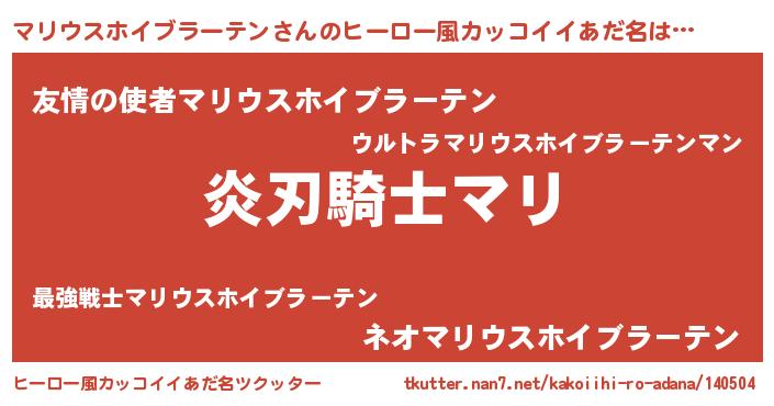| 男性向けラノベタイトル風あだ名 | 『マリウスホイブラーテンの嫁は女の子じゃないと思った?』 |