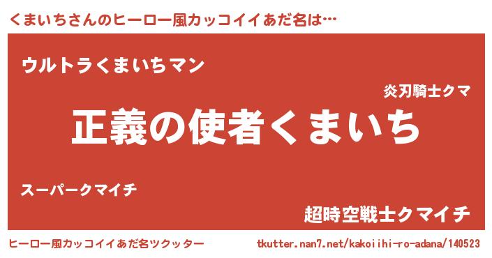 | 男性向けラノベタイトル風あだ名 | 『おまえをオタクにしてやるから、俺をくまいちにしてくれ! 』 |