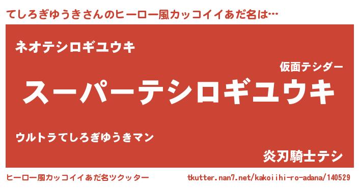 | 胡散臭い通販商品みたいなあだ名 | 『必ず成功するブレスレット…その名も「てしろぎゆうき」』 |