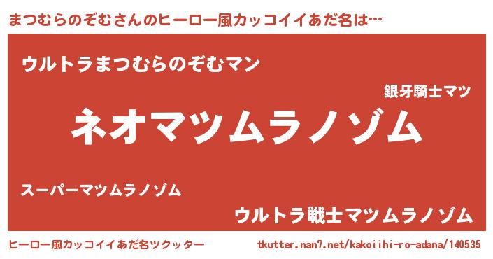 | ヘコむあだ名 | 『まつむらのぞむ(爆)』『なまこ酢』 |