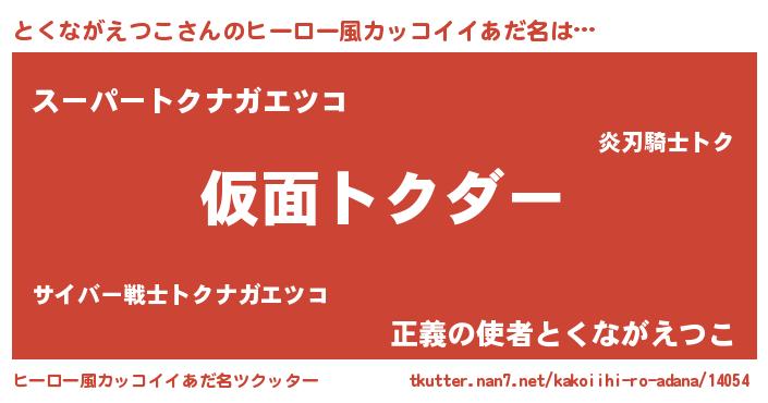 | 意味不明あだ名 | 『住所不定無職とくながえつこ(85歳)』 |