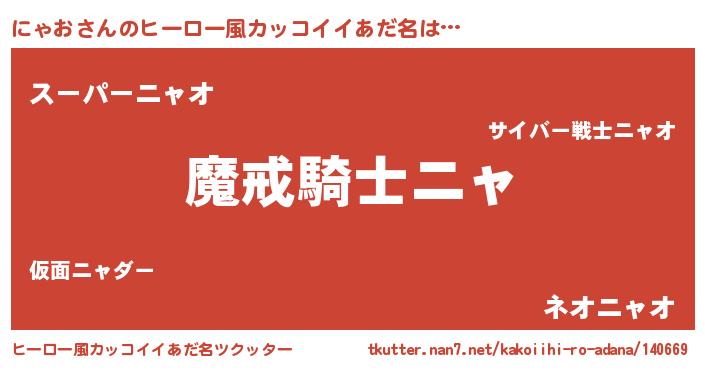 | 男性向けラノベタイトル風あだ名 | 『ダンジョンににゃおを求めるのは間違っているだろうか』 |