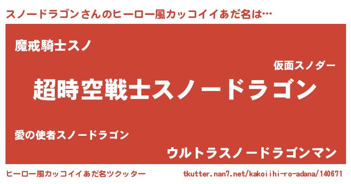 | 女子向けラノベタイトル風あだ名 | 『スノードラゴンなんてお断りですっ。』 |