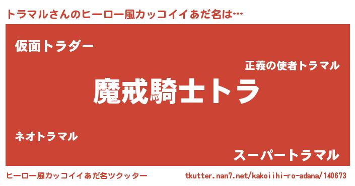 | 男性向けラノベタイトル風あだ名 | 『ダンジョンにトラマルを求めるのは間違っているだろうか』 |