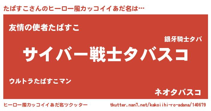 たばすこさんのヒーロー風カッコイイあだ名をツクッター!