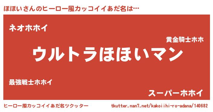 | 男性向けラノベタイトル風あだ名 | 『うちの娘の為ならば、俺はもしかしたらほほいも倒せるかもしれない。』 |