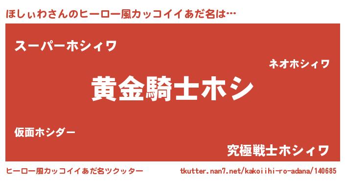 | 女子向けラノベタイトル風あだ名 | 『ほしぃわは平凡を望む』 |