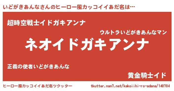 | 胡散臭い通販商品みたいなあだ名 | 『来世でも幸せになれる水素水…その名も「いどがきあんな」』 |