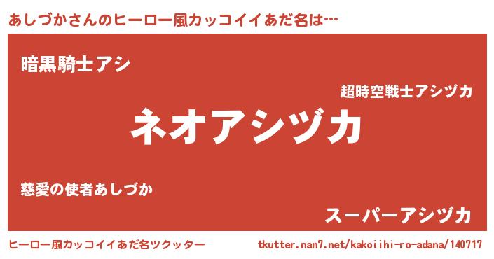 | 男性向けラノベタイトル風あだ名 | 『あしづかという概念が存在しない退屈な世界 』 |