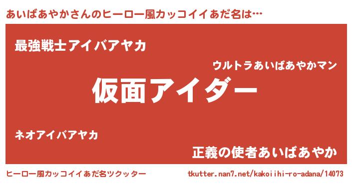 | 意味不明あだ名 | 『ヨモギ科あいばあやか属』 |