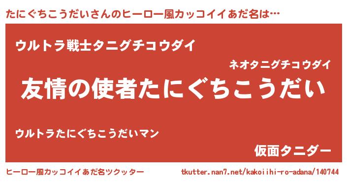 | 男性向けラノベタイトル風あだ名 | 『おまえをオタクにしてやるから、俺をたにぐちこうだいにしてくれ! 』 |