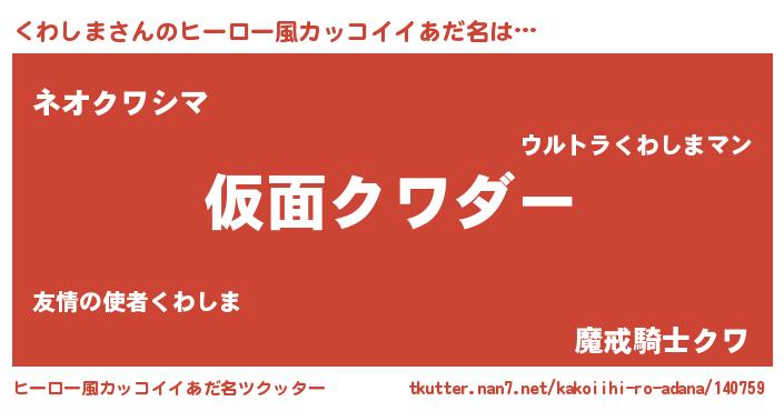 | 男性向けラノベタイトル風あだ名 | 『クワシマスレイヤー』 |