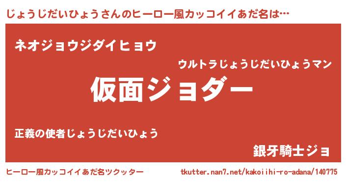 | 意味不明あだ名 | 『住所不定無職じょうじだいひょう(9歳)』 |