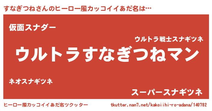 | 男性向けラノベタイトル風あだ名 | 『転生したらすなぎつねだった件』 |