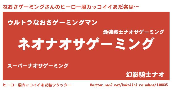 | 伝説のあだ名 | 『古文書に記された勇者なおさゲーミング』 |