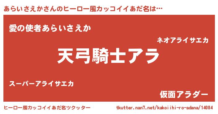 | 男性向けラノベタイトル風あだ名 | 『あらいさえか~年齢イコール彼女いない歴の魔法使い~』 |