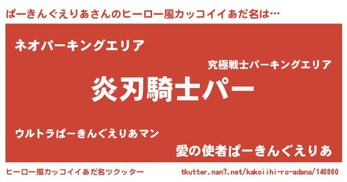| 男性向けラノベタイトル風あだ名 | 『ぱーきんぐえりあの嫁は女の子じゃないと思った?』 |