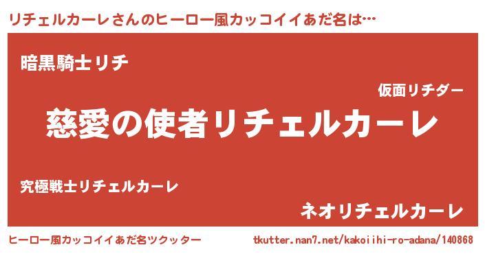 | 女子向けラノベタイトル風あだ名 | 『死神リチェルカーレの再婚』 |