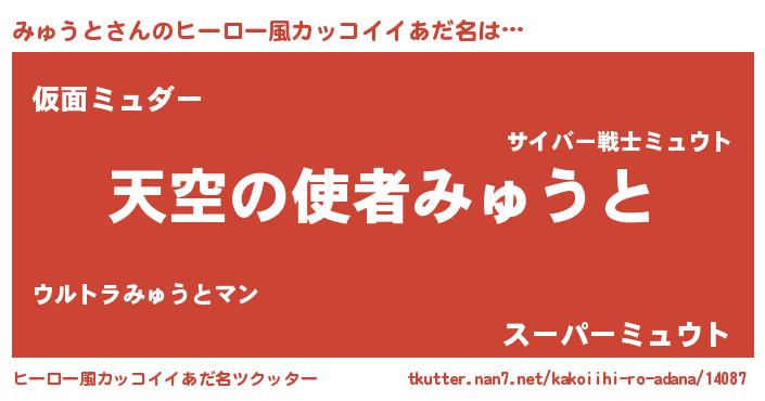| 女子向けラノベタイトル風あだ名 | 『死神みゅうとの再婚』『闇のみゅうと』 |