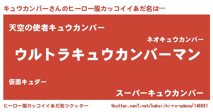 | 男性向けラノベタイトル風あだ名 | 『やはりキュウカンバーの青春ラブコメはまちがっている 』 |