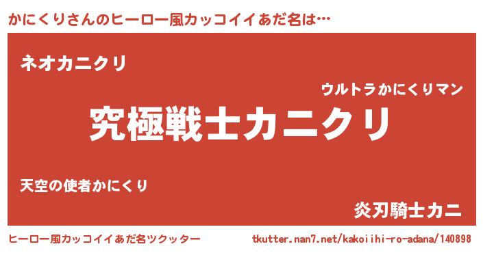 | 女子向けラノベタイトル風あだ名 | 『かにくりストレイドッグス』 |