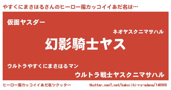 | 男性向けラノベタイトル風あだ名 | 『やすくにまさはる~年齢イコール彼女いない歴の魔法使い~』 |