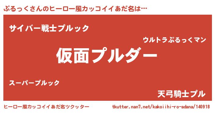 ぷるっくさんのヒーロー風カッコイイあだ名をツクッター!