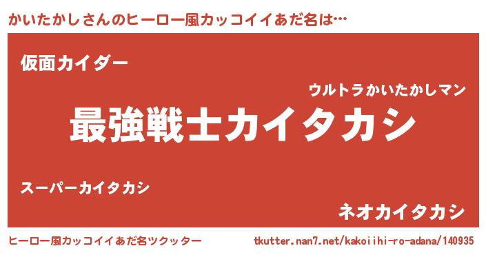| 男性向けラノベタイトル風あだ名 | 『かいたかし~年齢イコール彼女いない歴の魔法使い~』 |