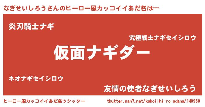 | 男性向けラノベタイトル風あだ名 | 『この素晴らしい世界になぎせいしろうを!』 |