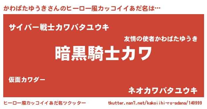 | ポケモン風あだ名 | 『ヒカワバタユウキ』『カワセウス』 |