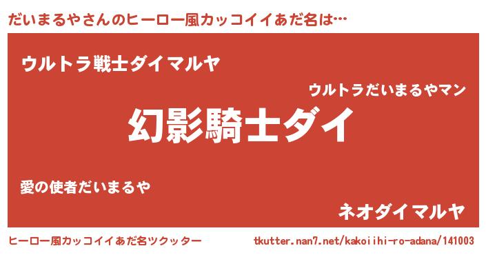 | ヘコむあだ名 | 『だい太郎』『だいまるや(苦笑)』 |