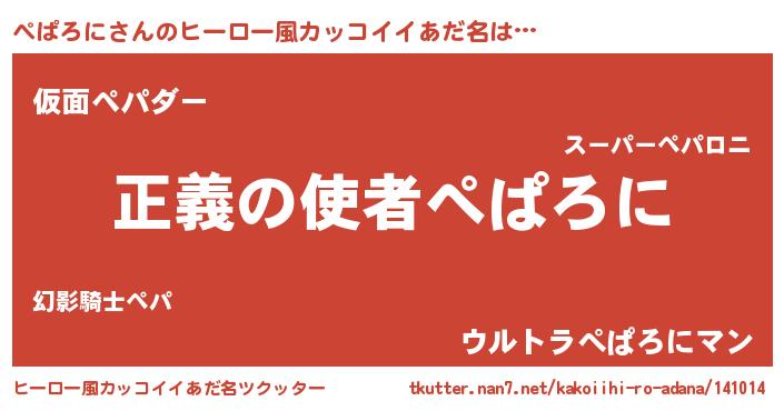 | 欧米人風あだ名 | 『ダニエルぺぱろに』『マイケルぺぱろに』 |