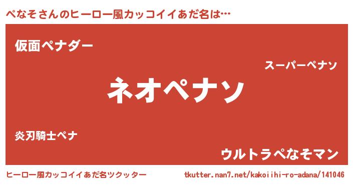 | 胡散臭い通販商品みたいなあだ名 | 『絶対に幸福をもたらす健康食品…その名も「ぺなそ」』 |